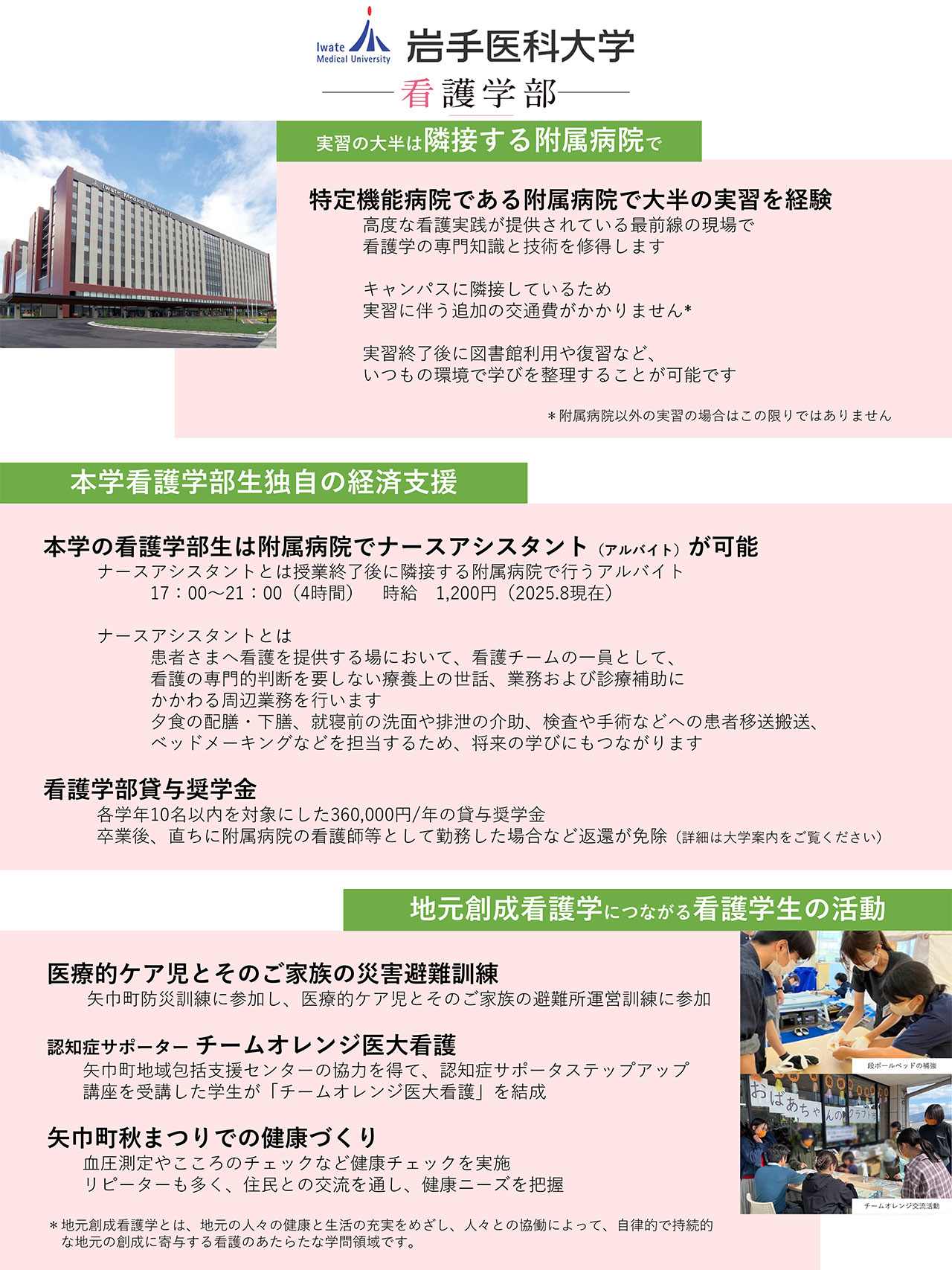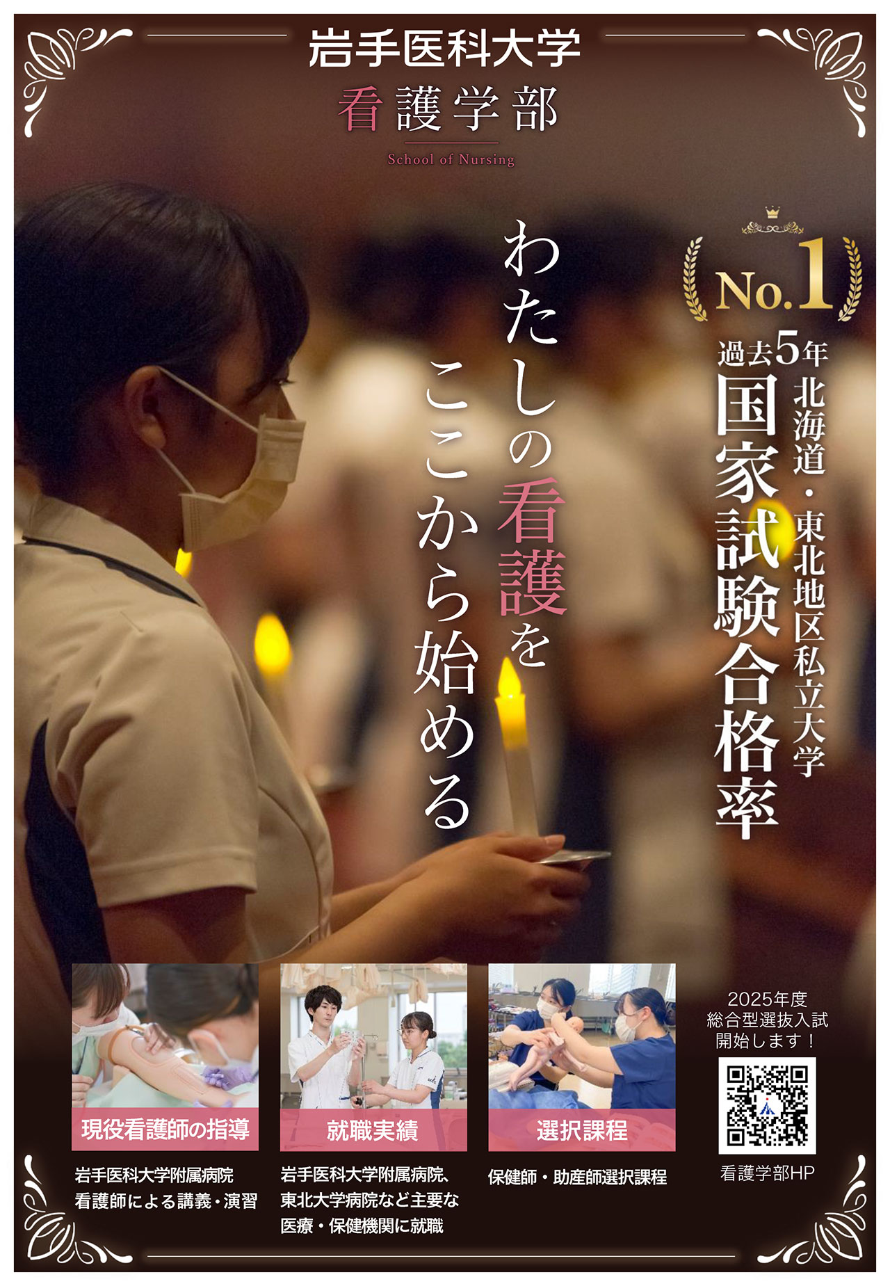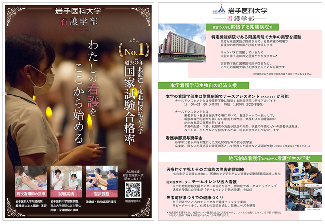 さらには、建学の精神に基づく人間性を重視した教育理念と、先進的な大学附属病院などでの臨床実習を通じて、学生は岩手県や東北地方に留まらず、広く全国で医療の質の向上に貢献し、看護師、保健師、助産師としての多様なキャリアパスを追求できるようになります。